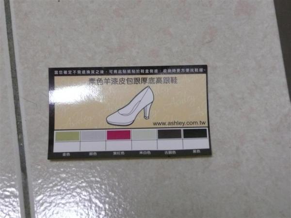 除了附上防塵套與鞋跟外,還有一張很貼心的貼紙,讓用鞋盒收納鞋子的蜈蚣小姐們可以輕鬆找到鞋。