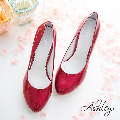 Ashley特賣會素面漆皮包跟厚底高跟鞋‧桃紅色